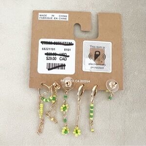 NWT Urban Outfitters Green Beaded 3 Mismatched Earrings Sets
