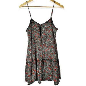Dainty floral, Flowers, Black red, Sleeveless, Tiered, Viscose, Summer, UO, Flowercore, Flowers, Floral, Bloomcore, Gardens, Gardening, Nature, Naturecore, Dark Naturalism, Cottagecore, Prairie, Boho, Bohemian, Hippie, Eclectic, Countrycore, Cabincore, Woodsy, Boho chic, Event, Party, Occasion, Festival, Wedding Guest, Bridal Shower, Baby Shower, Dressed Up, Celebration, Ceremony, Night Out, Date, Baby Shower Dress, Whimsigoth, Witchy, Witchcore, Whimsical, Goth, Gothic, Cottagecore