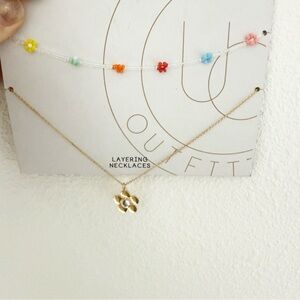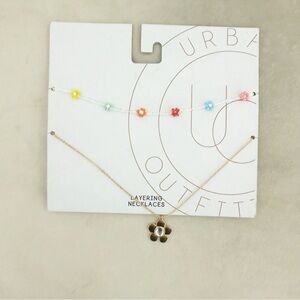 NWT Urban Outfitters Layla Multicolored Beaded Flower Gold Layered Necklace