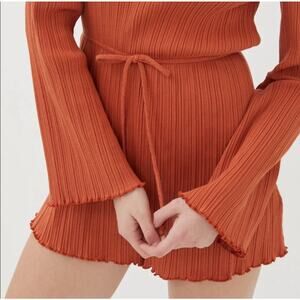 NWT Urban Outfitters Lettuce Edge Ribbed Pumpkin Tie Romper Women's Size Medium