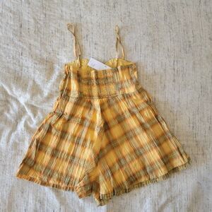NWT Urban Outfitters Lorelei Crinkle Cotton Romper - Yellow- Small - Sold Out!