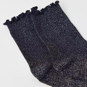 NWT Urban Outfitters Lurex Shimmer Black Ruffle Socks