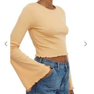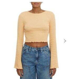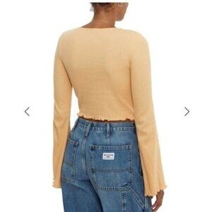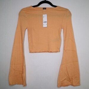 NWT Urban Outfitters Orange Crop Top Size XS Long Sleeve Lettuce Trim Blouse