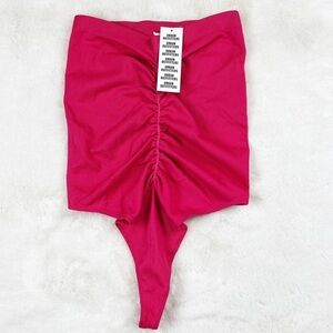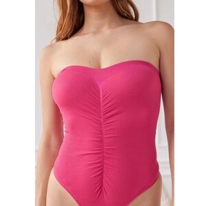 NWT Urban Outfitters Out From Under Siobhan Ruched Thong Bodysuit in Pink