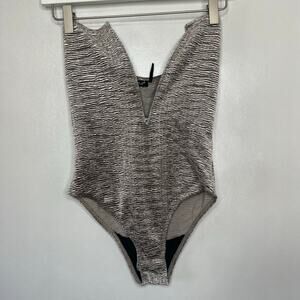 NWT Urban Outfitters Out From Under Women’s XS Neutral Velour V Neck Bodysuit