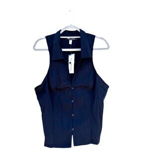 NWT Urban Outfitters Party Girl Button Down Sleeveless Shirt Black, Sz XL