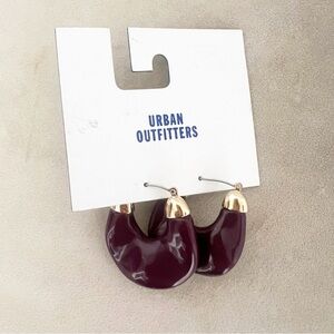 NWT Urban Outfitters Plum Textured Asymmetrical Hoop Earrings. Latch backs, gold hardware, and an asymmetrical textured design. Plum purple coloring.