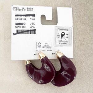 NWT Urban Outfitters Plum Textured Asymmetrical Hoop Earrings