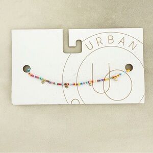 NWT Urban Outfitters Rainbow Mini Bead Charm Necklace. Clasp closure, mini beads that are in a rainbow color, and cute gold charms throughout.