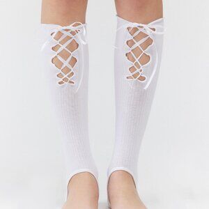 NWT Urban Outfitters Ribbed Lace-Up White Stirrup Leg Warmers
