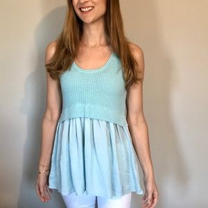 Sweater babydoll tank top with breezy, swingy sheer bottom part. Really adorable. Never worn - new with tags. Sheer is not my thing after having a baby! Size small fits true to size. Kimchi Blue brand purchased new from Urban Outfitters.