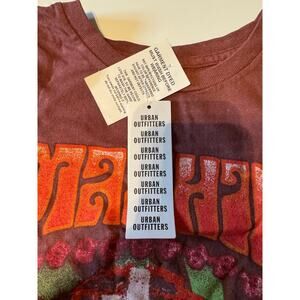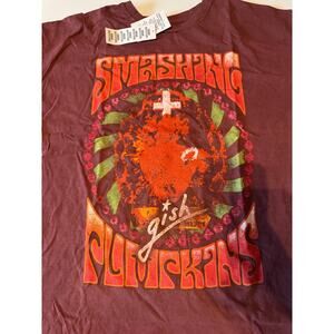 Features/Description: Maroon dyed t-shirt. Front of the shirt has large Smashing Pumpkins Gish graphics on it.