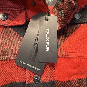 Features: Soft faux fur sherpa lining for extra warmth, attached hood, snap front placket, two snap-flap chest pockets, two front welt hand pockets, curved drop-tail hem, and branded UR snaps and interior logo patch.