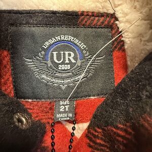 NWT Urban Republic Toddler Boys 2T Red Black Plaid Sherpa Lined Hooded Coat