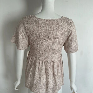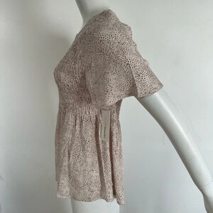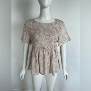 NWT Urban Romantics Women's Blouse Top Size L Beige Animal Print Short Sleeve
