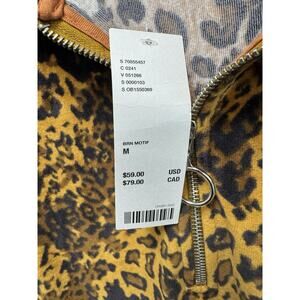 NWT Urban Women's M Outfitter AOP Leopard Velour Short Sleeve Quarter Zip Shirt