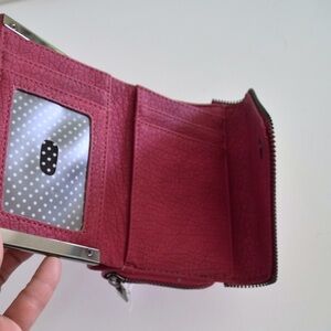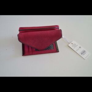 Red with a hint of fuchsia color. Metallic hardware & zip