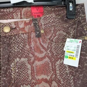 NWT V Cristina Women's 14P Metallic Glitter Snakeskin Cropped Wide Leg Jeans