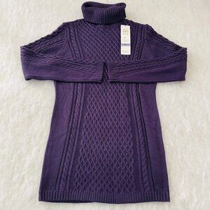 NWT V28 Womens Purple Turtleneck Cable Knit Slim Fit Bodycon Sweater Dress Sz XL