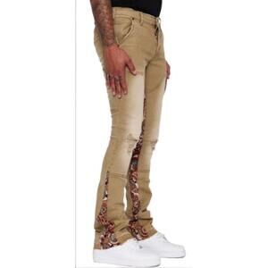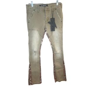 NWT VALABASAS Jeans Mens Size 29 Beige Patchwork Stacked Distressed Slim Fit