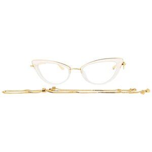 NWT VALENTINO EYEGLASSES CAT EYE WOMEN GOLD/WHITE WITH CHAIN