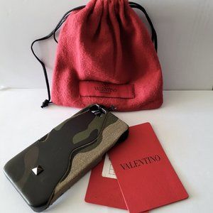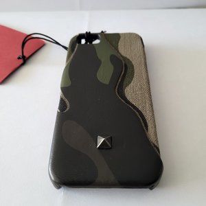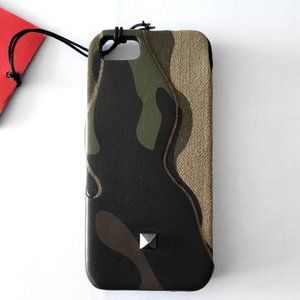 NWT VALENTINO iPhone 5 Leather Suede Stud Metal Accent Camo Print Hard Case