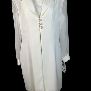 NWT VANY Vintage 1990 Elegant White Sheer Sleeve Coat and dress size 16