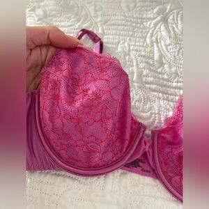 NWT VASSARETTE DEMI UNPADDED PINK LACE BRA 34C
