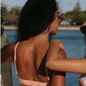 NWT VDM The Label Heidi Underwire Bikini Top ONLY. Brand Print: Sunburst Tartan (an orange and white tartan print). Size: Small