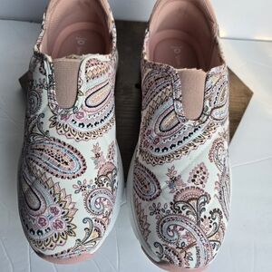 NWT, VERA BRADLEY Paisley Slip-On Sneakers - Pink and White.Size 9
