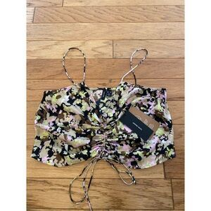 NWT VERO MODA women's medium-sized dark color splattered Sleeveless ruched crop top. An edgy yet sophisticated piece, perfect for casual and night-out looks.