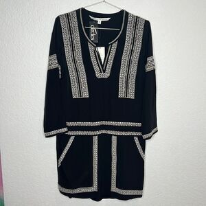 NWT VERONICA BEARD Ignacio Embroidered Shirt Dress Silk Black Size 6