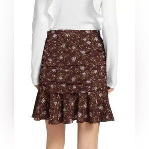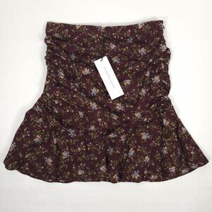 NWT VERONICA BEARD TARAS Mini SKIRT SILK Floral Print Ruched Merlot Multi Size 4