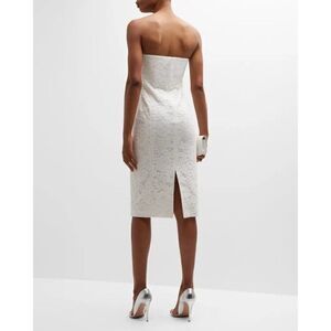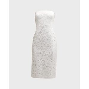 Veronica Beard "Sanaz" lace midi dress featuring a strapless neckline