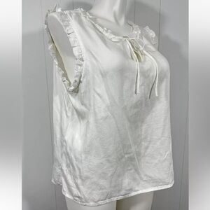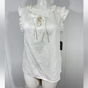 NWT VERSONA Sz XL White Ruffle Tie Neck Cute Tank Top Cottagecore Dressy