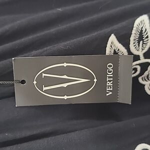 *NWT* VERTIGO Black w/White Embroidery Sleeveless Dress, size Large. Lovely floral embroidery. Brand new with tags. Please note measurements as it seems to run small.