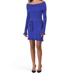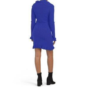 NWT VERTIGO Cowl Neck Pleated Skirt Waist Tie Ribbed Knit Mini Dress