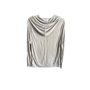 This knit hoodie also features a tie hoodie accent and full zip closure, making it a versatile addition to your wardrobe. Hand wash only to maintain its quality. This hoodie is available in size M and is perfect for women who want to stay stylish and comfortable in any season. Note-true color in first pic, appears different lighting. Note small pin hole in hood area, not noticeable when worn.