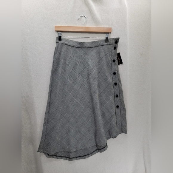 NWT VERVE Blues Check Asymmetrical Gray w/Buttons $60 Skirt Size-4