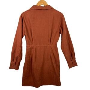 NWT VERY J Brick Red Long Sleeve Faux Wrap V Neck Mini Dress Small