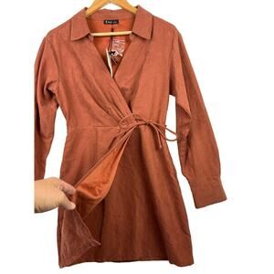 NWT VERY J Brick Red Long Sleeve Faux Wrap Mini Dress Small
