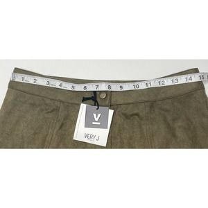 Very J Olive Green Faux Suede Scalloped Buttoned Mini Skirt Size Large