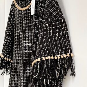 NWT VICI Marleen Tweed Pom Pom Tunic Dress Short Sleeves Side Pockets
