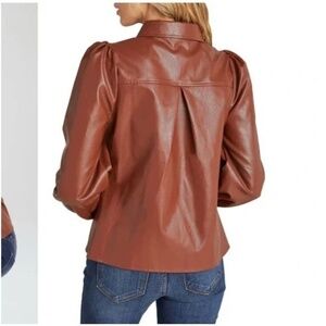 NWT VICI Pleather Vegan Leather Puffed Sleeve Button Down Shirt Caramel Brown M