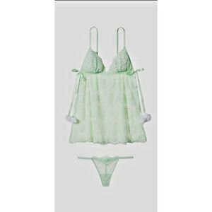 NWT VICTORIA SECRET FLYAWAY LACE BABY DOLL SET