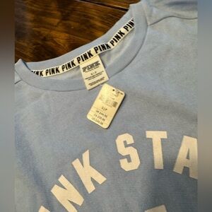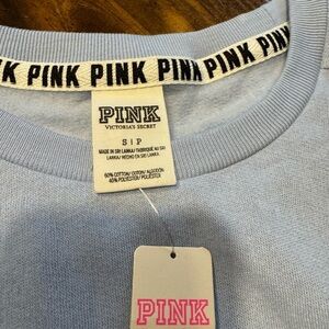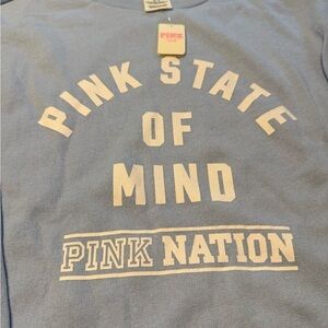 NWT 🎀🆕️ VICTORIA SECRET PINK Crew Sweatshirt “PINK STATE OF MIND” (2016) SIZE S. Light blue