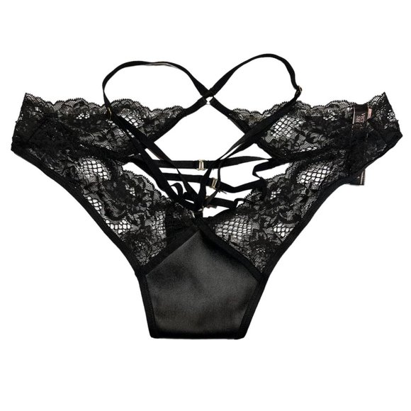 NWT VICTORIA'S SECRET Brazilian Slip Pantie Sz XL Black Lace Faux Leather