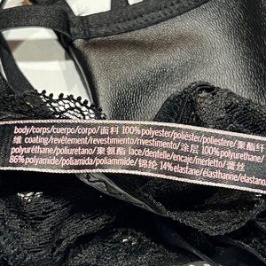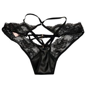 New Brazilian pantie underwear. Black lace and faux leather like material.
