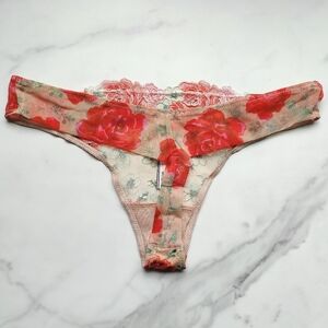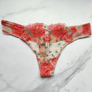 NWT VICTORIA'S SECRET DREAM ANGELS FLORAL EMBROIDERY THONG PANTY IN RED EMBROIDE