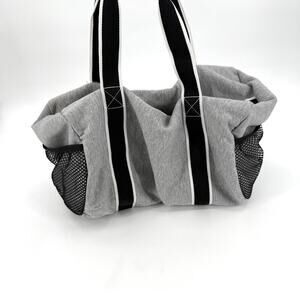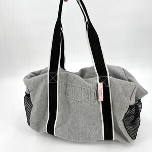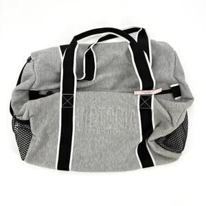 NWT VICTORIA'S SECRET GREY SOFT SPORT FLEECE MEDIUM DUFFLE BAG BLACK MESH SIDES